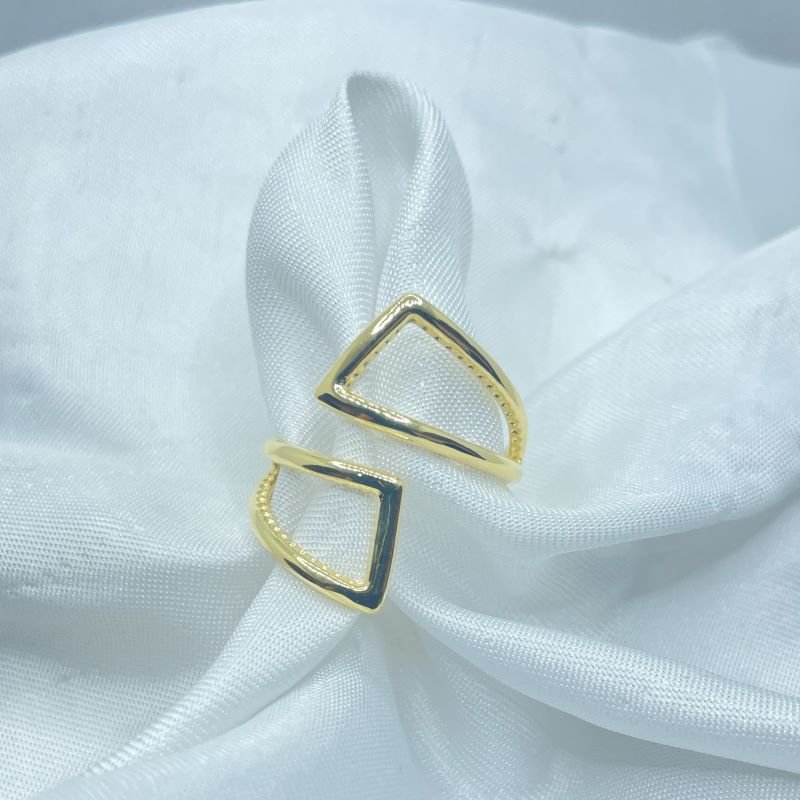 Anel com design geométrico vazado em latão bruto, ideal para aplicação de banho e acabamento personalizado. Peça moderna e diferenciada, perfeita para quem trabalha com revenda e produção de semijoias. Excelente opção para coleções contemporâneas. Disponivel nos tamanhos P/M/G, com regulagem.