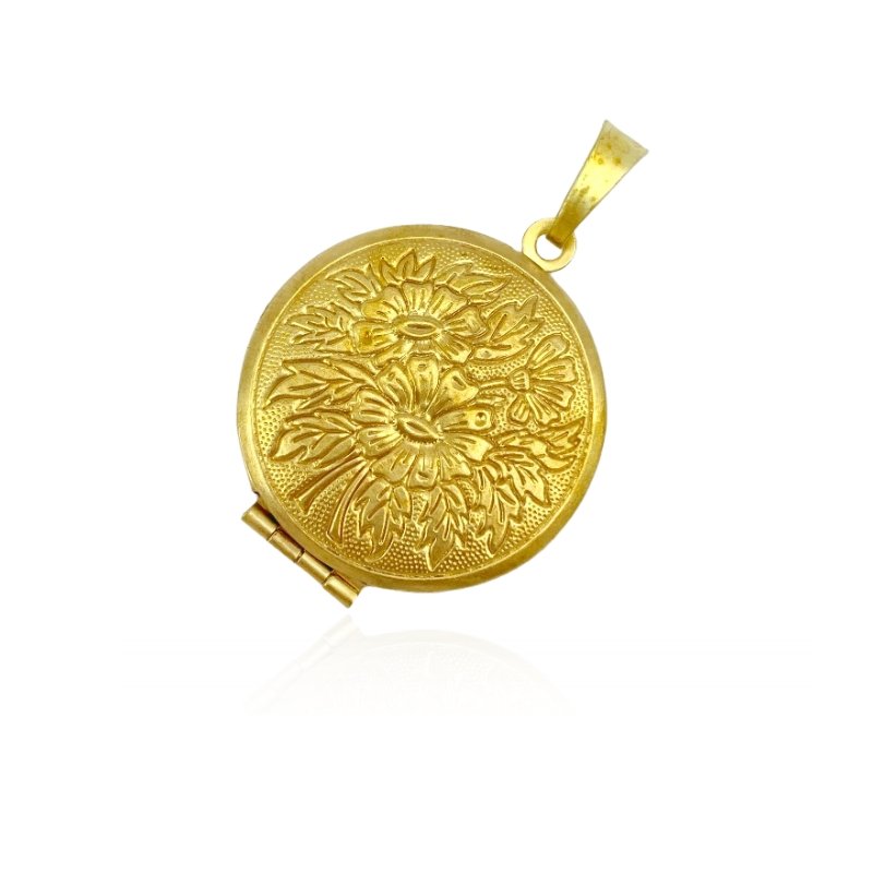 RELICARIO EM LATAO REDONDO ORNAMENTADO COM FLORES 32MM // QTDE PCT: 5 PC // VAL UNIT: R$ 4,98 : 0301311200 / : 5.1g Facebook X Pinterest WhatsApp R$ 24,90 PCT Latão Estampado / Fio / Tubos : - + : 5 : OK × × : RELICARIO REDONDO FLORES 32MM